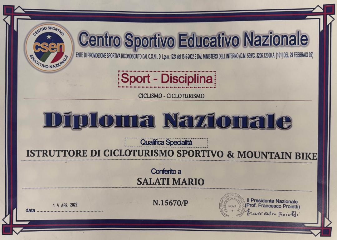 Istruttore - tecnico sportivo cicloturismo - C.S.I.