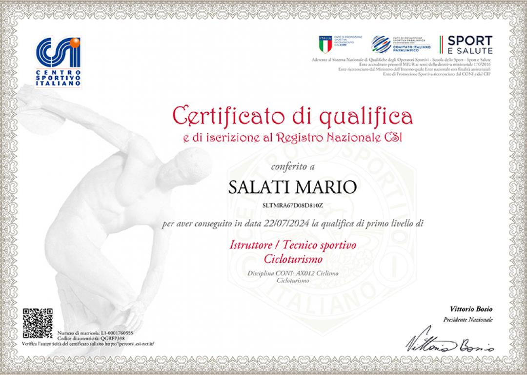 Istruttore - tecnico sportivo cicloturismo - C.S.I.